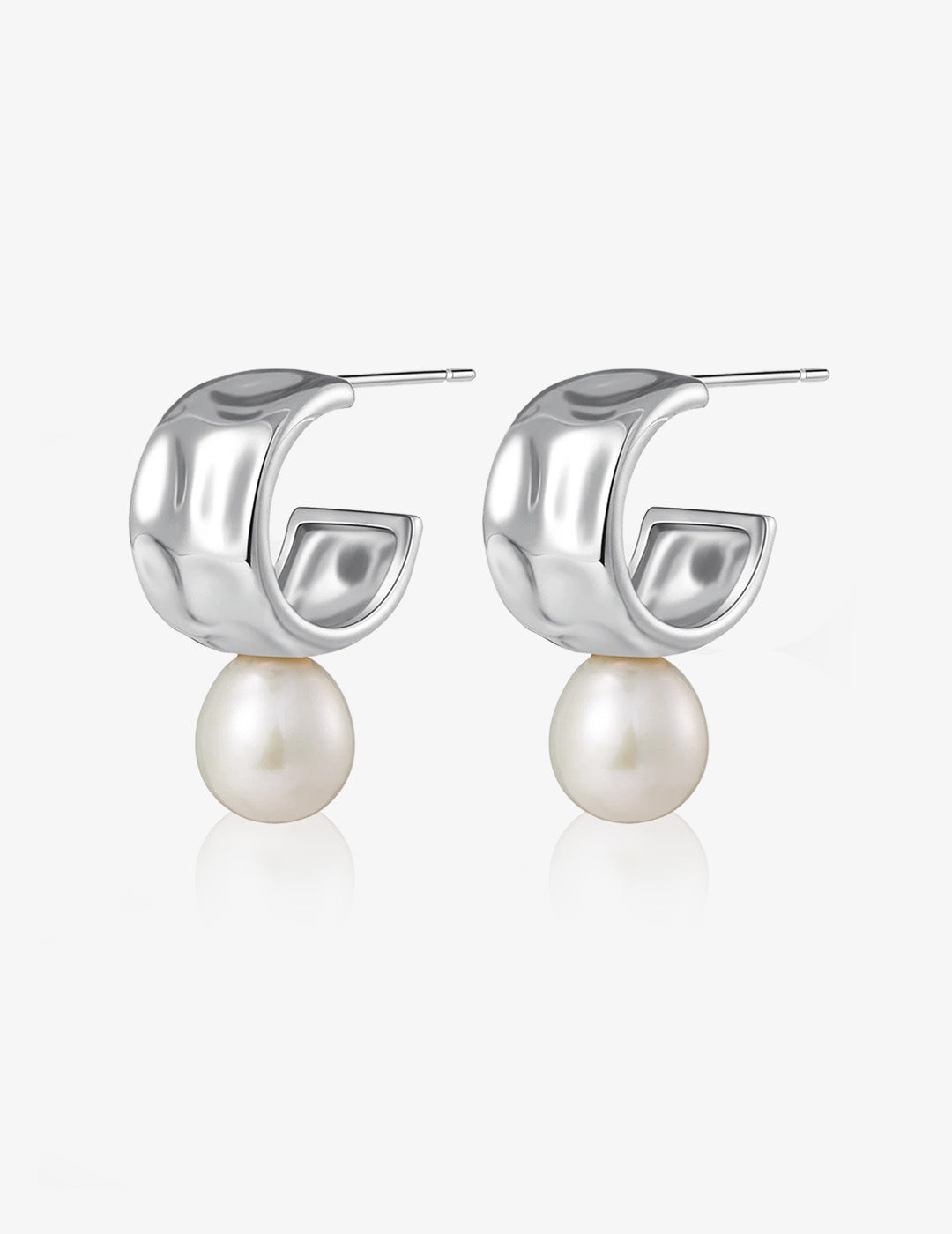 Elevate every look with our Silver Wave Hoop Earrings, where chunky, textured studs meet the timeless luster of freshwater pearls. Meticulously crafted from 18K White Gold Vermeil 925 Sterling Silver, each hammered stud catches and reflects light, while drop‑shaped freshwater pearls—fused to the metal—add a graceful, artisanal flourish. Whether you’re dressing up, dressing down, or simply grabbing a coffee, these hoops bring effortless elegance to your everyday style.